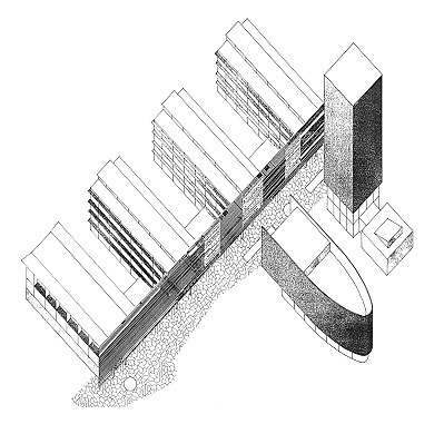 eine großzügige Esplanade zu erweitern, an der riegelförmige