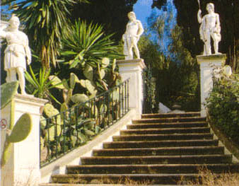 Man betritt das Achillio durch das eiserne Tor, auf dem der Name in