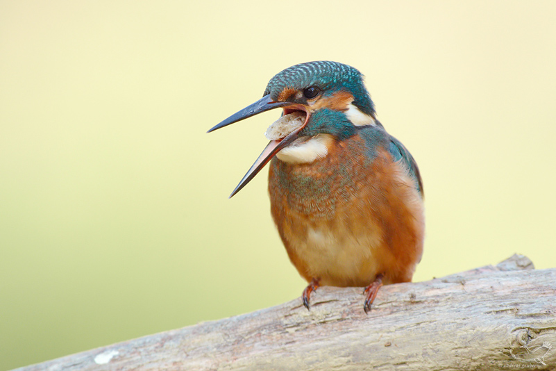 (Alcedo atthis) mit Speiballen