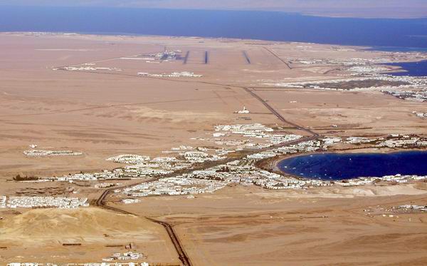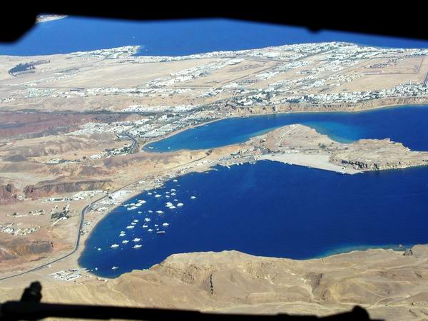schönen Überblick über Ras Mohammed. Der Anflug führte direkt über Sharm el Sheikh und der Naama Bay. Am Flughafen waren ausser den