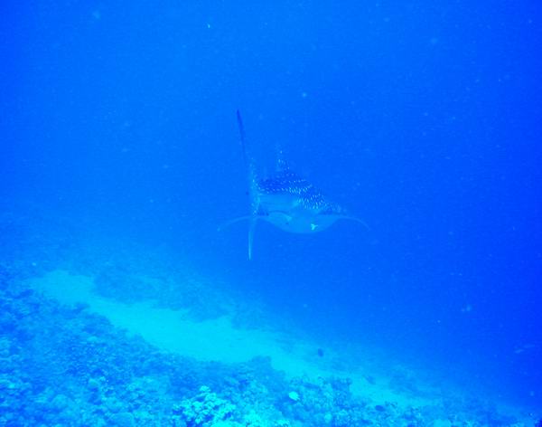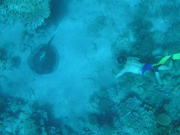Die Wahl fiel Aufgrund der von den stärker werdenden Nordwinden (und damit verbundenen Wellen) geschützteren Bucht auf das neue Hilton Shark's bay. Es war wieder eine schöne Woche. Als absolutes Highlight war sicher unsere Begegnung mit einem ca 3,5m langem Walhai. Auch der min 1,5m große Stachelrochen, dem ich fotografisch ziemlich nahe rückte war nicht zu verachten. Leider kühlte das Wasser in der Zeit von anfänglich gut 27ºC auf nur mehr 26 Grad ab. Ich hatte zum Glück aber einen 4mm Neoprenoverall und 3kg Blei mitgenommen. Die Sonne war intensiv, im Schatten war es aber bei stärkerem Nordwind schon kühl. Die optimale Zeit für den Sinai ist sicher zwischem Mitte Oktober bis Mitte November. Einmal machte ich auch Nachts einen kurzen Schnorchelgang.