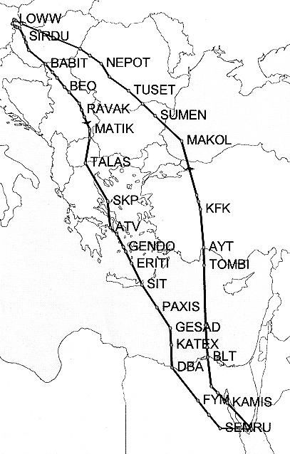 Der Flug selbst führte auf der Standartroute über die SID ABETI über den Baladon Richtung Skobije, Saloniki, Skiathos, Athen, Kreta